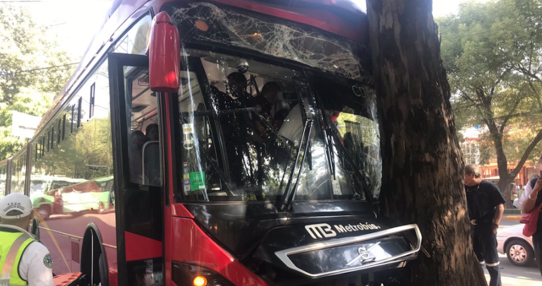 A las 20:33 horas del día de ayer, dos unidades del Metrobús chocaron en las avenidas Paseo de la Reforma e Hidalgo, cerca de la iglesia de San Hipólito, dejando un saldo de 20 pasajeros heridos.