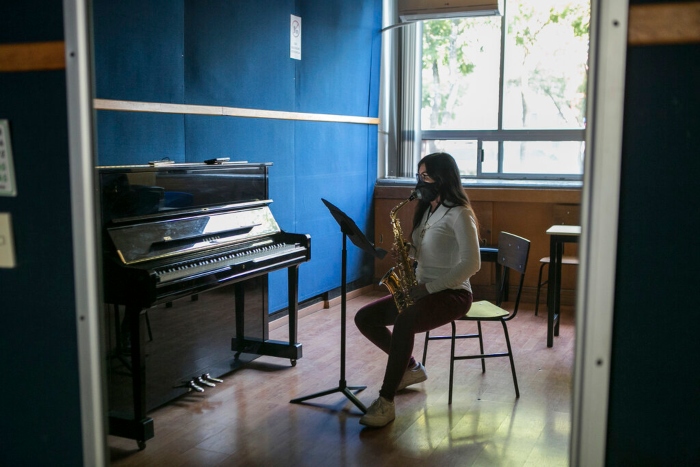 Mientras, Ríos ensaya. “Cuando comienzo a armar mi saxofón siento que estoy tomando forma”. En sus partituras hay mensajes manuscritos: “Tú puedes, tocas bonito”, se lee en uno de ellos.