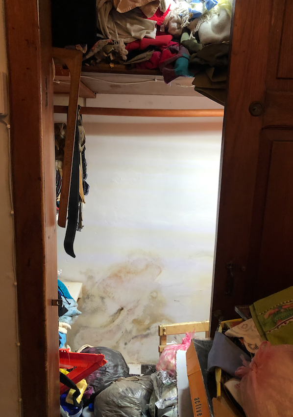 En una de las habitaciones del departamento número 1 las filtraciones de agua comenzaron en el clóset y la humedad penetró en la ropa, que ahora se deja sobre la cama para evitar que guarden olores. En la otra recámara, ubicada también al lado de la construcción, ocurrió lo mismo y ahora el pasillo luce llenó de muebles que se desalojaron de ambas recámaras.