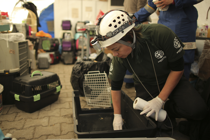 "Nosotros llegamos el 16 [de febrero], salimos de México para acá. Es un grupo multinacional, tenemos gente de Costa Rica, de México, de la India, de Estados Unidos, y entonces lo que nosotros hacemos es tratar de buscar a los animales que están, no sé, por ejemplo, hay un perro que se rescató ayer de un techo, estaba en un balcón de un último piso, imagínate que llevaba ahí casi 15 días, o un gato del tercer piso. A veces los animales están entre los escombros y salen sólo a comer porque están muy asustados, entonces ponemos trampas para que ellos salgan", explicó la Dra. Edwards.