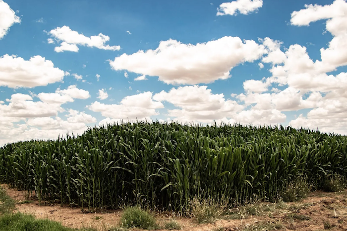 El maizal que sustituyó a los campos de ajo. Foto: Adolfo Valtierra, A dónde van los desaparecidos