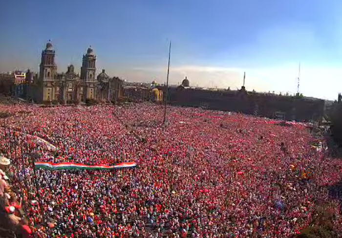 "¡Llenamos el Zócalo! Venimos de manera voluntaria. A las injurias respondimos con civismo. Después del cálculo, les podemos decir que somos un chingo. Agradecemos a quienes están en 120 plazas del país en este momento”, señalaron los organizadores previamente, quienes empezaron a dar mensajes desde las 10 de la mañana.
