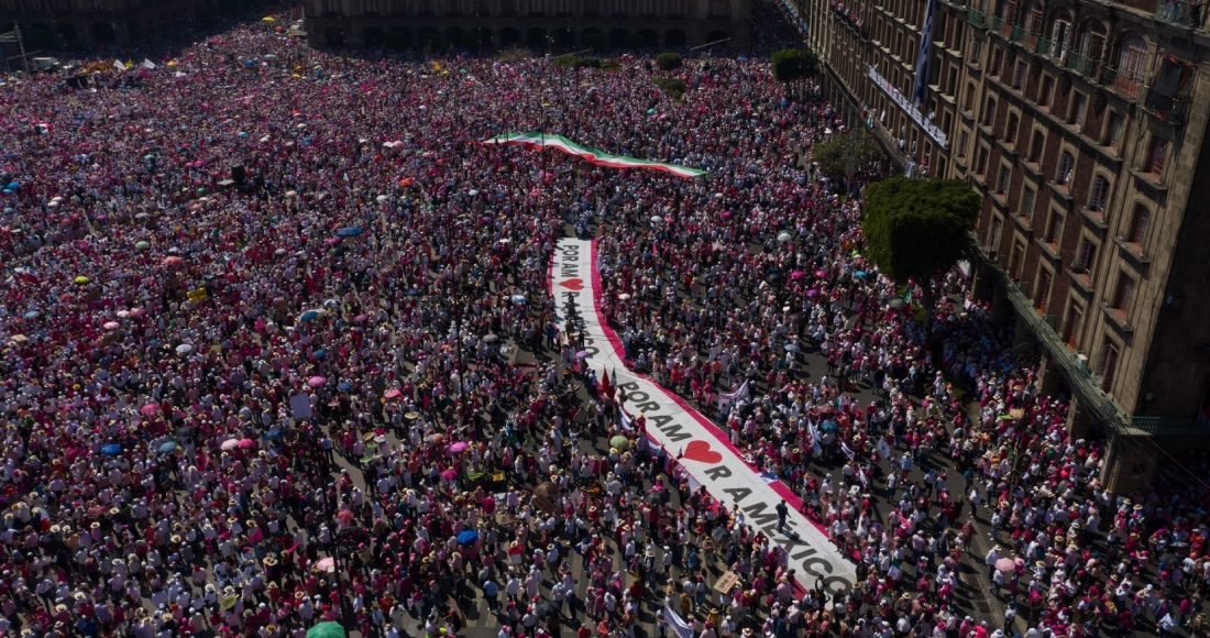 Miles de personas se concentraron el domingo pasado en el Zócalo de la Ciudad de México para protestar contra la reforma de la Ley Electoral que impulsa el Presidente López Obrador y en defensa del INE.