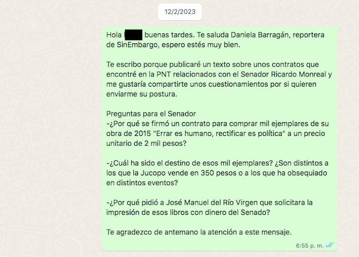 Uno de los primeros temas que se abordó en la entrevista fue lo relacionado con el libro Errar es humano, rectificar es política. SinEmbargo publicó que en noviembre de 2022, con la firma de José Manuel del Río Virgen, el Senado compró mil ejemplares de esa obra de Monreal con un costo unitario de 2 mil pesos cada uno. En la Plataforma Nacional de Transparencia (PNT) está público el contrato por 2 millones de pesos.