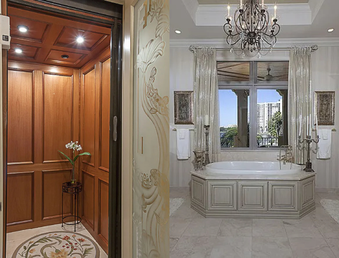 La lujosa propiedad construida en 2006 tiene un elevador propio y alberca con clima. Sin embargo, los sitios especializados en bienes raíces explican que no tiene espacio para aparcar yates, aunque es posible rentarlo. La descripción de la mansión señala que se trata de una "impresionante" propiedad" con "amplias vistas a la bahía".