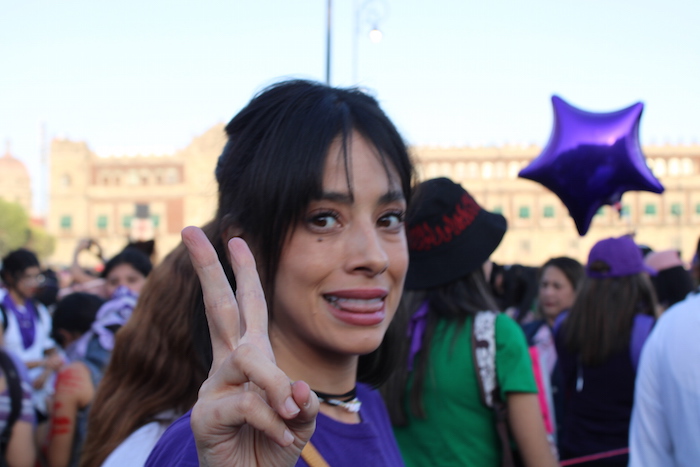 "Estamos todas las mujeres aquí levantando la voz por todas las que ya no están, y por todas las que queremos seguir vivas", dijo en entrevista con este diario en su llegada al Zócalo capitalino.