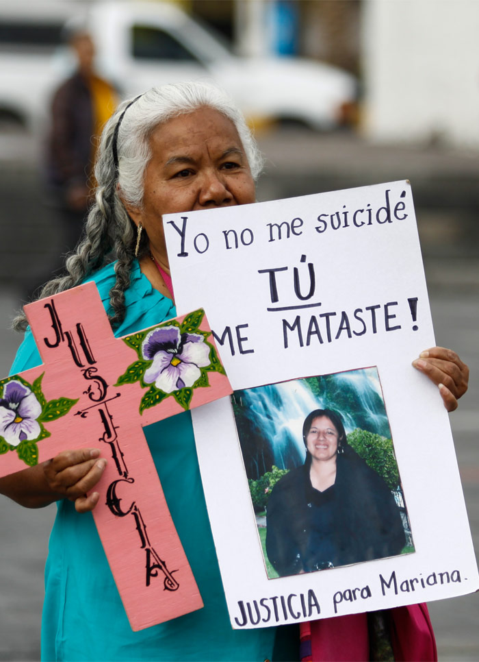 De acuerdo con su relato, desde que le notificaron de la muerte de Mariana, ella denunció que Julio César Hernández Ballinas, quien era el esposo de su hija, ejercía violencia en su contra. Las pruebas de que el suicidio era un montaje eran notorias pero las autoridades decidieron no verlas.