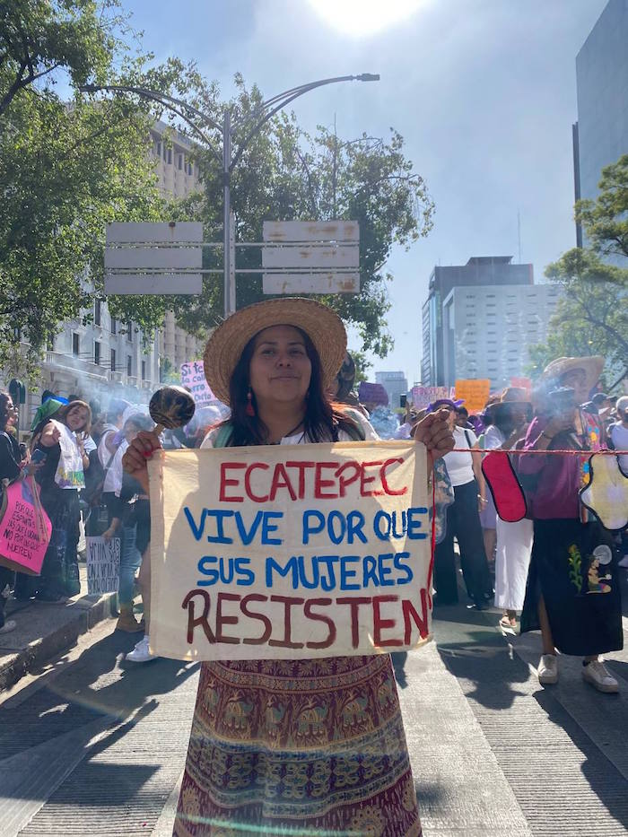 "Los cuerpos no son objetos. Hoy no es un día de festejos, es de lucha. No queremos felicitaciones, queremos una reconstrucción como sociedad donde las mujeres verdaderamente podamos tener una vida libre de violencia", dijo Rosy, una joven de 22 años que viene desde Ecatepec, Estado de México, uno de los municipios más peligrosos.