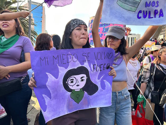 "¡Alerta, alerta, alerta feminista, que América Latina será toda feminista!" y "¡señor, señora, no sea indiferente, se mata a las mujeres en la cara de la gente!", gritan está tarde las manifestantes que avanzan hacia al Zócalo capitalino.