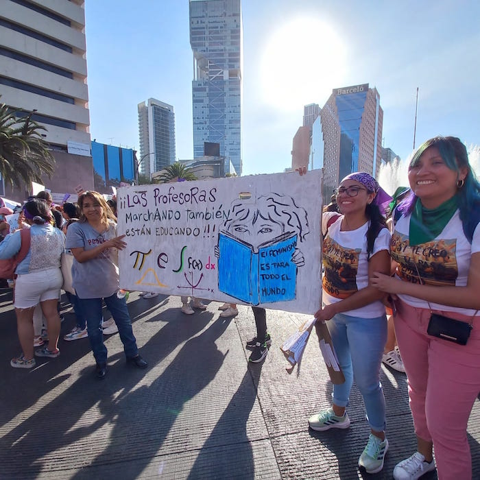 "Soy la maestra de las niñas que no vas a tocar", se lee en una de las pancartas.
