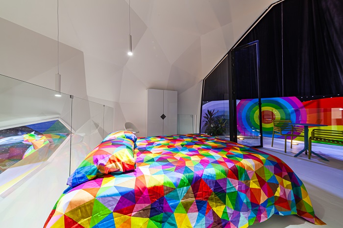 El artista Okuda creó una Casa Calavera en la que realmente se puede vivir y que se encuentra en la experiencia de "Metamorfosis", el público puede recorrer la planta baja de este espacio.