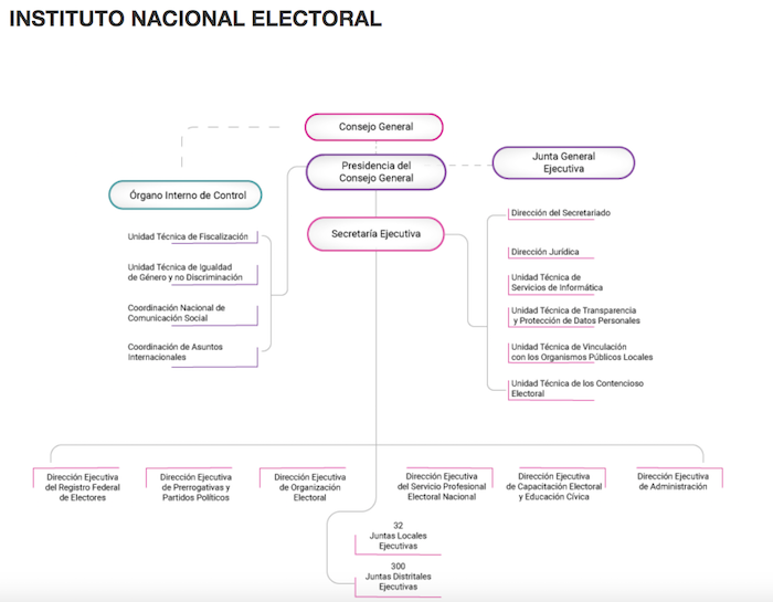 De acuerdo con el Directorio del INE son 35 personas las que trabajan en esta área de la que se desprende la Dirección del Secretariado y la Dirección Jurídica, así como cuatro unidades técnicas de servicios de informática, transparencia, vinculación con los Organismos Públicos Locales y la unidad Técnica de lo Contencioso Electoral.