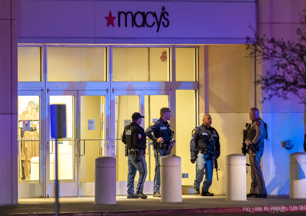 Agentes de la policía vigilan la entrada de un centro comercial tras un tiroteo masivo en El Paso, Texas. Foto: Andrés Leighton, AP