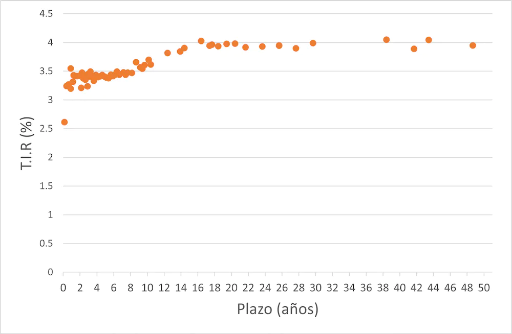 En cualquier caso, sigue dándose una curva con una cierta relación positiva entre tipos de interés y plazo.