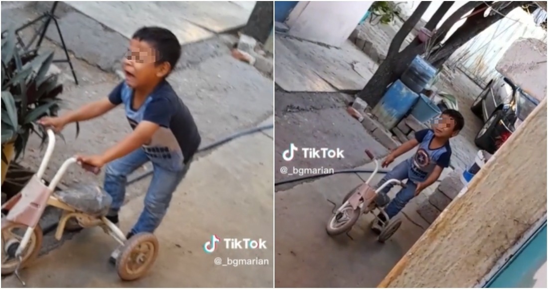 En la videograbación se observa cómo el menor canta a todo pulmón y con mucho sentimiento mientras daba un paseo en su triciclo por el patio de una casa.