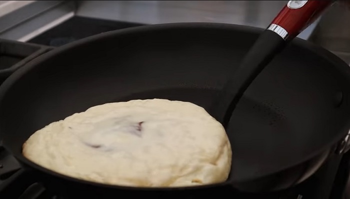 -Agregar una cucharada y media de crema de avellana en el centro del Hotcake. Luego, tapar con un poco más de mezcla.