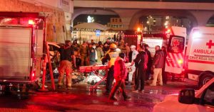 Imágenes del lugar mostraban hileras de cuerpos bajo mantas de emergencia ante el recinto. También se veían ambulancias, bomberos y camionetas de la morgue.