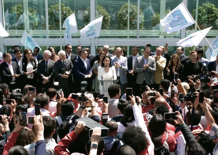 Entre gritos de "¡Es un honor estar con la mejor!" y "Ya llegó, ya está aquí, la que va a quitar al PRI", Gómez agradeció la unidad de la coalición y dijo: "Los mexiquenses estamos más unidos que nunca, más comprometidos, a todos nos mueve el más profundo deseo de cambio".