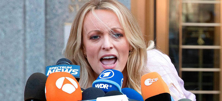 Stormy Daniels, actriz de cine para adultos. habría recibido sobornos por parte de Trump para guardar silencio sobre encuentros sexuales que mantuvieron. Foto: AP.