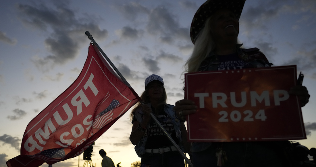 El expresidente Donald Trump levanta el pulgar a su salida del Trump International Golf Club, el domingo 2 de abril de 2023, en West Palm Beach, Florida. Foto: Evan Vucci, AP