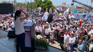 En su intervención, la Secretaria Rocío Nahle reafirmó que “en Veracruz es tiempo de las mujeres", y por lo mismo respaldan a Sheinbaum, de quien destacó sus propuestas de proyectos ambientales por sus conocimientos profesionales, entre los que recordó el parque solar fotovoltaico en la zona urbana más grande del mundo y una planta recolectora de desechos para la producción de energía. Además de la prohibición del uso de plásticos de primer uso, medida que permite el ahorro de toneladas de desechos.