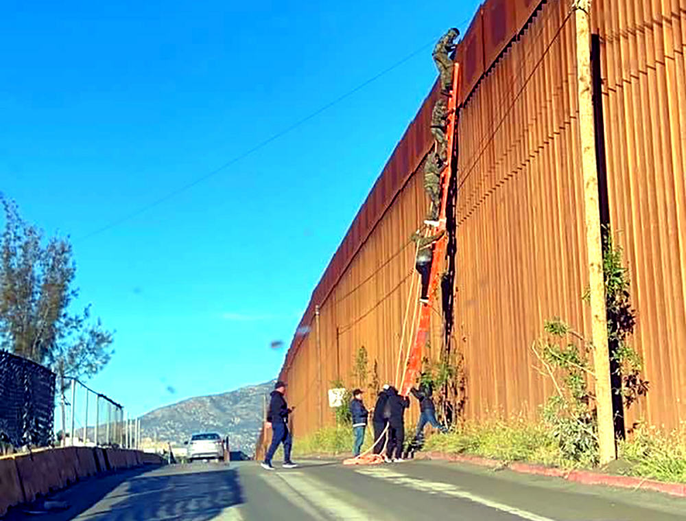 Entre finales de enero y principios de marzo de 2023, este Semanario atestiguó en al menos cinco ocasiones y a plena luz del Sol, cómo traficantes de ilegales colgaron escaleras sobre Avenida México, justo donde autos y vehículos pesados hacen fila para cruzar por la Garita de Tecate hacia Estados Unidos. A la vista de transeúntes y choferes, lograron introducir de manera ilegal a por lo menos treinta personas, detenidas segundos después por la patrulla migratoria al pisar suelo americano.