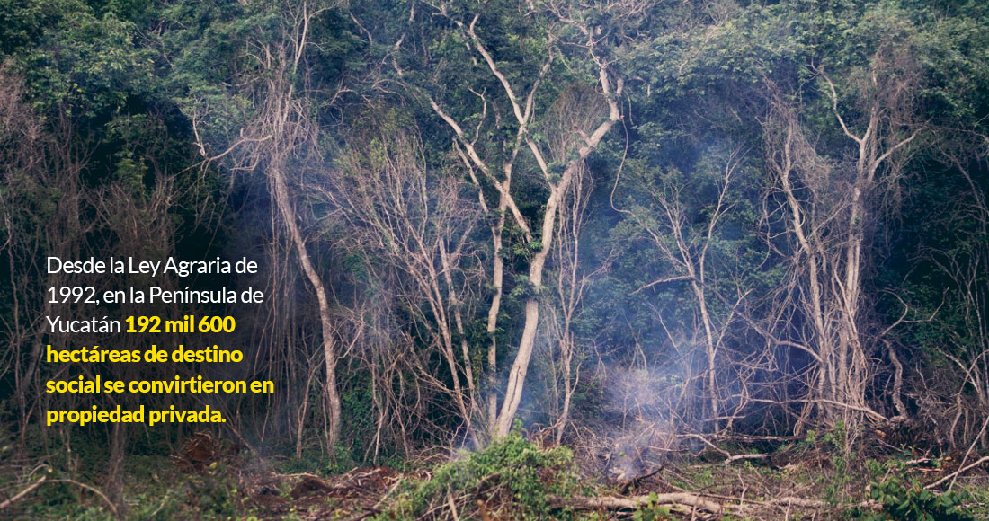 El estudio –realizado por Gabriela Torres-Mazuera, Raúl Benet y Sergio Madrid– concluye que en las últimas tres décadas, "la Península de Yucatán ha experimentado transformaciones territoriales sustanciales relacionadas a la propiedad social" a partir de las modificaciones a la Ley Agraria de 1992", con Carlos Salinas de Gortari en el poder, tanto en Campeche, Quintana Roo y Yucatán, donde "un total de 22 mil 660 parcelas, con una superficie de 192 mil 600 hectáreas de tierra dejaron de ser de propiedad social y se convirtieron en propiedad privada" gracias a la colusión de empresarios y funcionarios del PRI y del PAN.