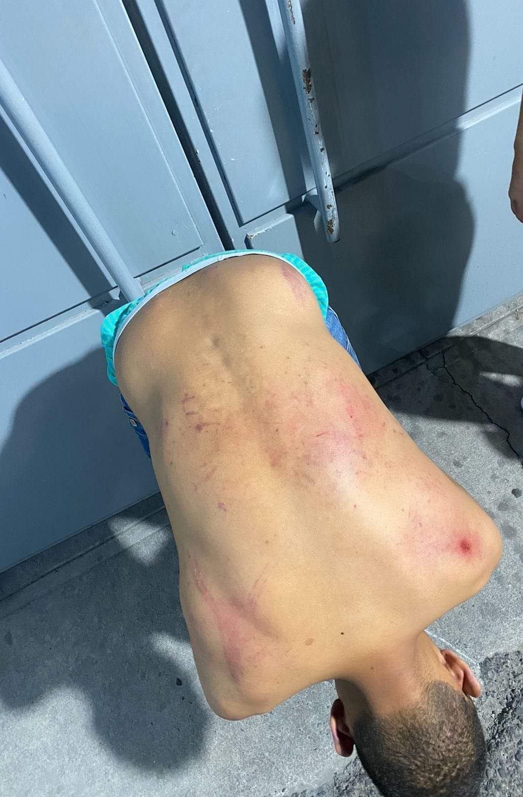 Ángel mostró las lesiones que le causaron los tres policías que lo golpearon, el esguince en la mano derecha, dos costillas con esguince en el costado derecho, además de visibles hematomas en la espalda y pecho.