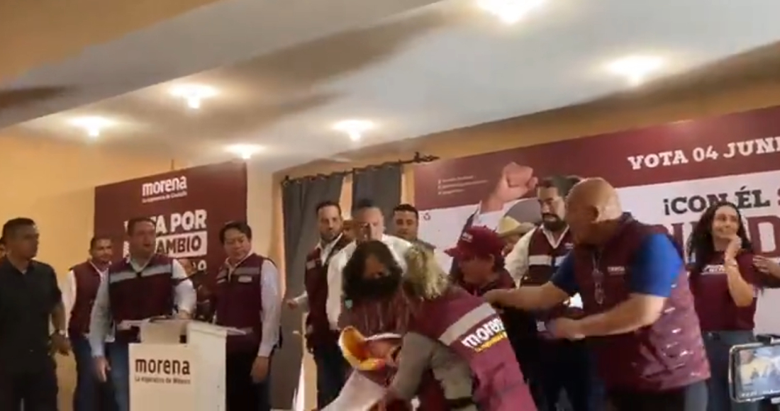 Ante esto, Delgado se mostró reacio a acceder, aunque no intervino desde el primer momento, pues la mujer traía una bolsa con la leyenda “Vota Morena” inscrita; sin embargo, después sacó una pancarta con el rostro del exsubsecretario de Seguridad y Protección Ciudadana, provocando un altercado en el mitin.