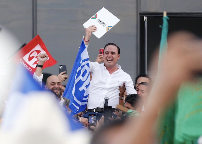 Manolo Jiménez durante su registro como candidato de Va por México al Gobierno de Coahuila. Foto: Twitter @manolojim.