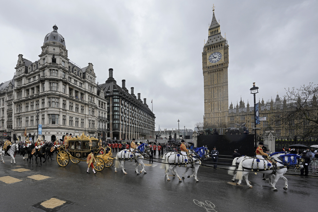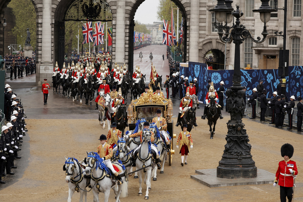 Las trompetas sonaron dentro de la abadía medieval y la congregación proclamó "Dios salve al rey Carlos" cuando comenzó la ceremonia frente a más de 2 mil invitados, incluidos líderes mundiales, aristócratas y celebridades. Afuera, miles de militares, decenas de miles de espectadores y algunos manifestantes convergieron a lo largo de una ruta que el rey recorrió desde el Palacio de Buckingham en un carruaje tirado por caballos con adornos dorados.