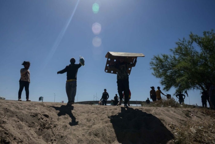 Algunos han colocado casas de acampar y otros improvisan refugios colgando mantas y cobijas del alambre de púas que ha colocado la Guarda Nacional de Texas y del muro metálico fronterizo instalado por Estados Unidos en su frontera con México.