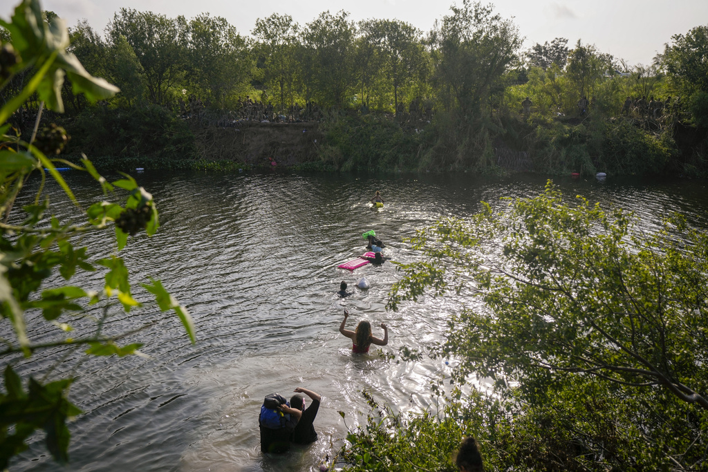 Migrantes cruzan el río Bravo en dirección a Estados Unidos, desde Matamoros, México. Foto: Fernando Llano, AP.