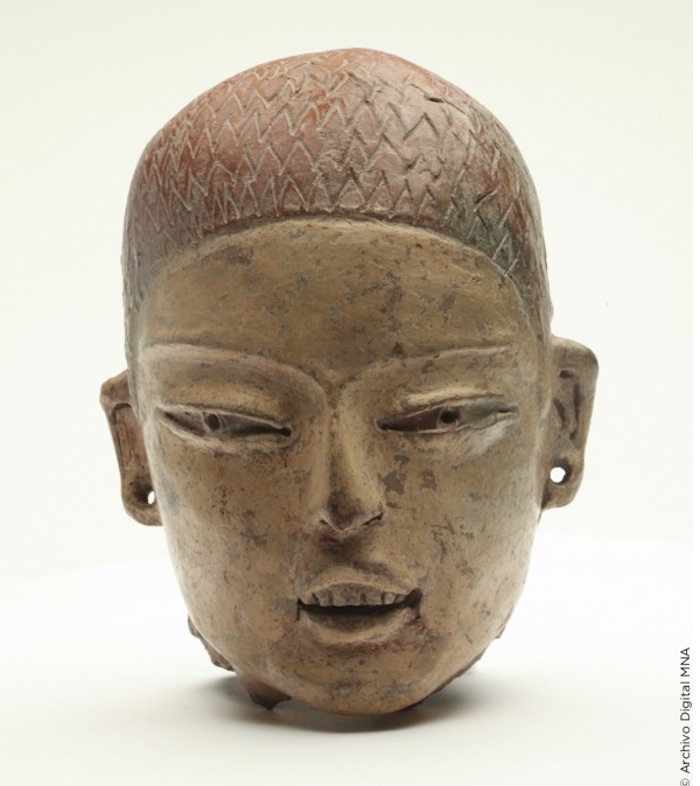 Esta cabeza procede del sitio de Gualupita, en Morelos, y seguramente formó parte de una figura hueca completa. Es representativa de la presencia de grupos olmecas de la Costa del Golfo, quienes influyeron en diversas partes de Mesoamérica, en particular en el Centro de México. Imagen: Museo Nacional de Antropología.