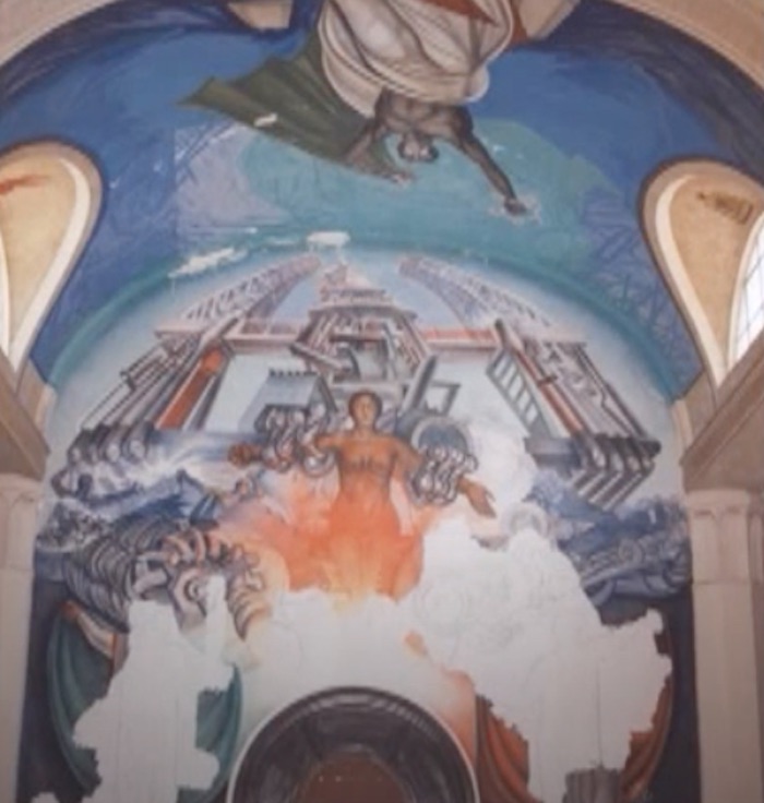 Murales del hotel Casino de la Selva dañados en 2001. Documental "El Casino de la Selva: la defensa del patrimonio" (2003) de Pablo Gleason.