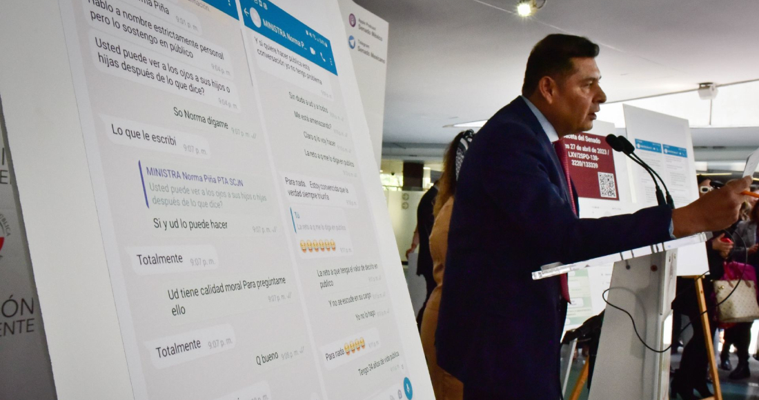 Luego de que la funcionaria lo proporcionara, señaló el Senador morenista, comenzó a recibir una serie de mensajes presuntamente desde el teléfono de la Ministra Norma Piña.