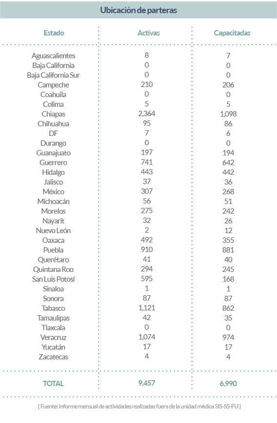 La Encuesta Nacional de Salud 2000, señala que en México entre el ocho y 25 por ciento de los nacimientos registrados pudieron haber sido atendidos por parteras.