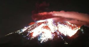 Así se vió y se escuchó esta madrugada el #volcán #Popocatépetl.