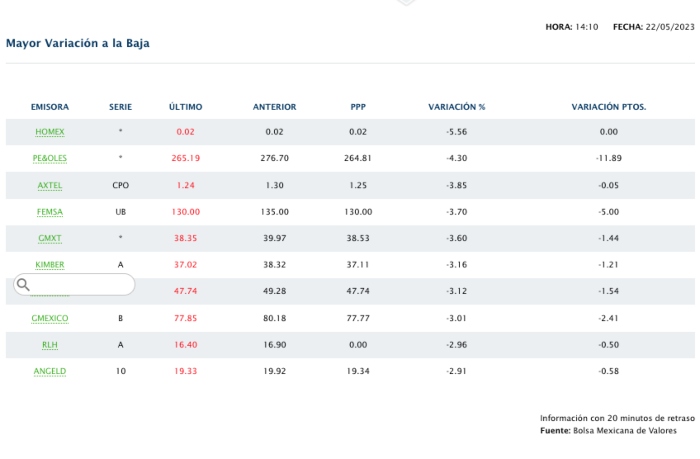 Al día siguiente, este lunes 22 de mayo, Grupo México y Grupo México Transportes figuraron entre las empresas con mayores pérdidas entre las firmas que cotizan en la Bolsa Mexicana de Valores. El precio de las acciones de Grupo México cayeron de 80.18 el viernes 19 de mayo a 77.77 este cierre de lunes.