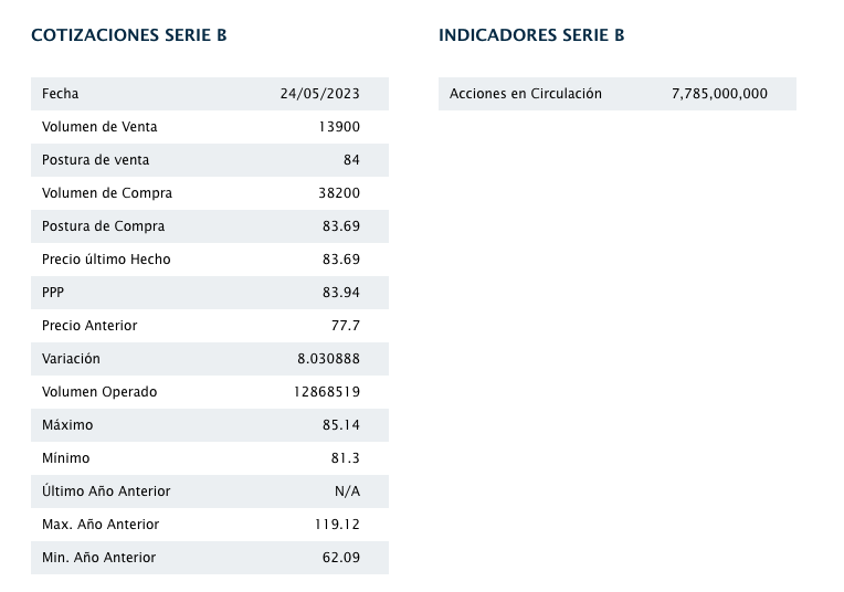 Cotización de Grupo México en la BMV. Foto: BMV.