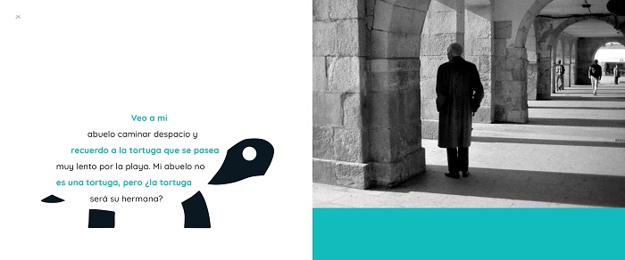 Cuando se lee el poemario Mis abuelos no son tortugas, es inevitable recordar a nuestros propios abuelos, sus pasos lentos avanzando en el pasillo de la vieja casa, los bastones, los lentes de doble aumento, las canas, las voces quebradas recordando otros tiempos siempre inalcanzables, uno mismo se recuerda sentado en las piernas de los abuelos sintiéndose invencible en su abrazo, creciendo bajo su sombra: “Hoy le conté a mi abuela un secreto. Le dije que cuando sea grande me convertiré en pájaro. Dice que ella me fabricará las alas” (página 23). Tal y como ocurre con el poema que abre el poemario, cuesta trabajo doblar la página después de este texto. Uno se niega abandonar este texto en particular por temor a lo que sigue, reconociendo que aquí hay certeza, no sólo la verosimilitud que suele alimentar a la literatura, sino que hay aquí, entre cada una de estas páginas, una verdad dulce y nostálgica, amarga y vital.