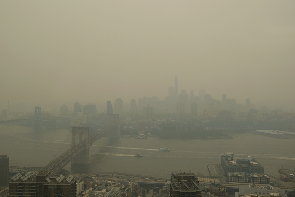 NUEVA YORK (AP) — El humo de los incendios forestales en Canadá se adentraba el miércoles en la Costa Este y la región centro-norte de Estados Unidos, cubriendo las capitales de ambos países con una insalubre bruma, obligando a cancelar vuelos en grandes aeropuertos, suspendiendo partidos de Grandes Ligas, y llevando a la población a retomar el uso de mascarillas.
