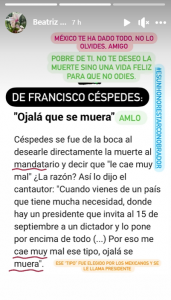 Francisco Céspedes desea la muerte de AMLO; Gutiérrez Müller: México te ha dado todo
