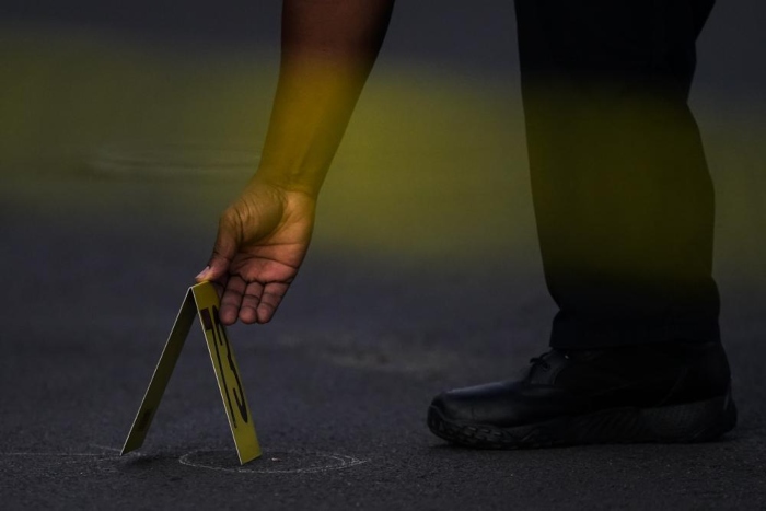 Un oficial de policía coloca un marcador de evidencia en la escena donde dispararon a varias personas. Imagen ilustrativa. Foto: Matt Slocum, AP.
