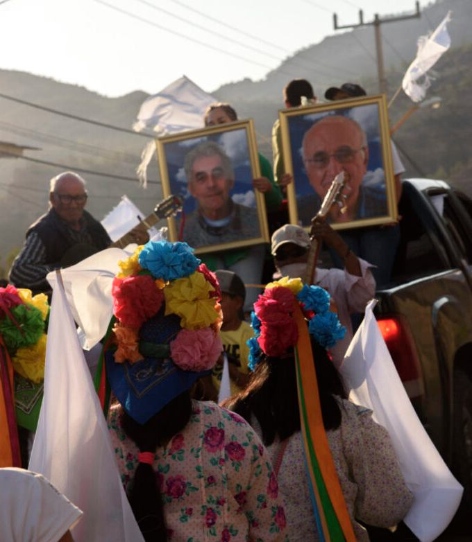 Con bailes indígenas tradicionales, porras y oraciones, cientos de personas recordaron y externaron su cariño hacia los sacerdotes jesuitas Gallo y Mora, asesinados hace un año en la comunidad de Cerocahui. De igual manera, exigen mejores condiciones de vida y seguridad para la región. A las tres de la tarde cientos de templos en todo el país sonaron sus campanas en memoria de ellos y de todas las víctimas de violencia en el país.