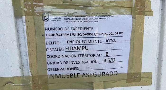 SinEmbargo comprobó que el predio está asegurado por la FGJCDMX desde el mes de mayo, conforme a los sellos fijados en los accesos, y obtuvo también el oficio en que esta institución solicita al Registro Público de la Propiedad evitar cualquier operación sobre ese terreno ubicado en la Alcaldía Benito Juárez, del que son copropietarios la hermana del exalcalde von Roerich de la Isla y Aridjis Vázquez, amigos íntimos de Jorge Romero Herrera, identificados como las tres principales cabezas del Cártel Inmobiliario del PAN.