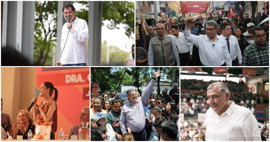 De los seis candidatos de la coalición gobernante, cuatro son de Morena: la exjefa de Gobierno de la Ciudad de México (CdMx), Claudia Sheinbaum Pardo; el excanciller Marcelo Ebrard Casaubón; el exsecretario de Gobernación, Adán Augusto López Hernández; y el Senador con licencia, Ricardo Monreal Ávila.