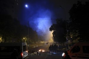 Los manifestantes erigieron barricadas, prendieron incendios y lanzaron fuegos artificiales a la policía, que respondió con gases lacrimógenos, cañones de agua y granadas aturdidoras. La policía dijo que al menos 200 policías resultaron heridos.
