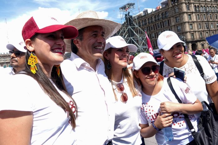 Entre las miles de personas que asistieron a la celebración, estaban miembros de su Gabinete, quienes algunos le acompañan desde que fue electo, así como de gobernadores morenistas y aliados.