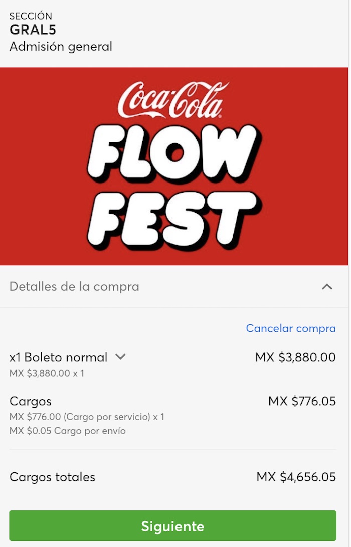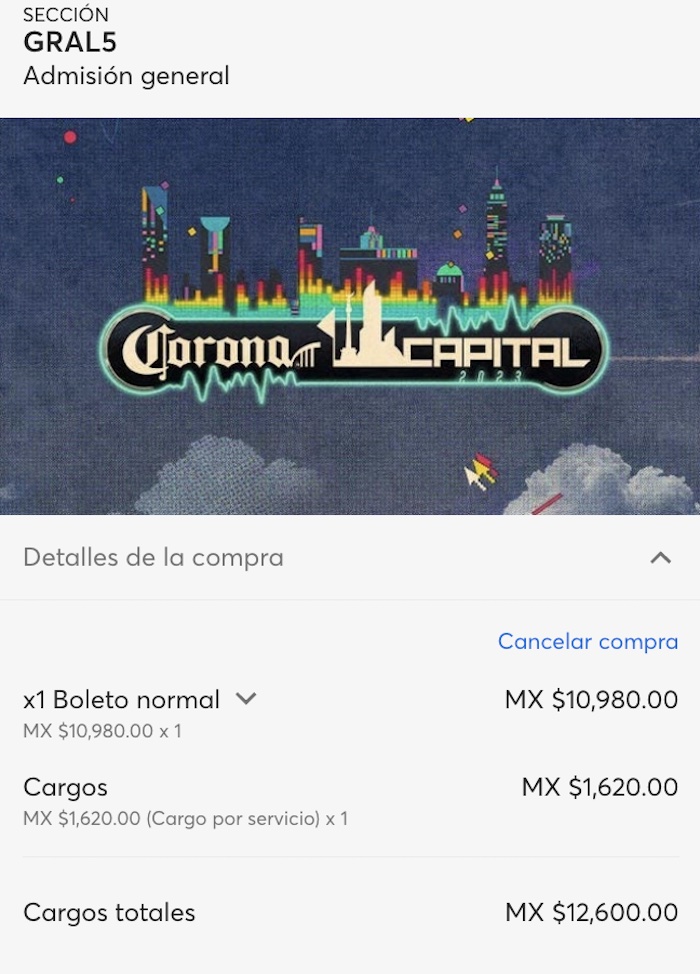 Respecto al precio de los boletos individuales su precio fue de mil 890 pesos por día en fase 2 general, -no hubo fase 1 en venta de boletos individuales- 2 mil 300 en la tercera y 2 mil 700 en la cuarta. La entrada Comfort Pass tuvo un costo de 2 mil 500 pesos en fase dos, 2 mil 900 en la tercera y 3 mil 500 en la cuarta. Finalmente, el boleto en modalidad Plus tuvo un precio de 3 mil pesos en fase 2, 3 mil 500 en la tercera y 4 mil pesos en la cuatro. Todos los precios antes mencionados no incluían los cargos por servicio.